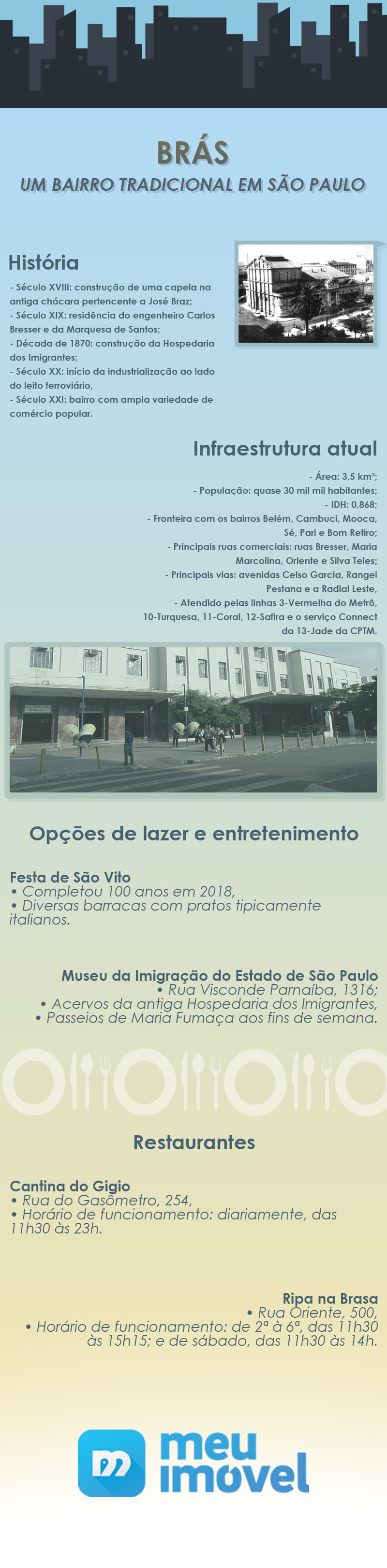 Por volta da década de 1870, o Brás recebeu a Hospedaria dos Imigrantes, com o intuito de receber os europeus que começavam a chegar em massa no país. Ao mesmo tempo, diversos galpões industriais se instalaram na região e passaram a empregar os milhares italianos residentes no pedaço.