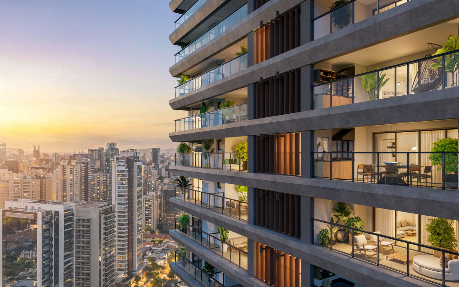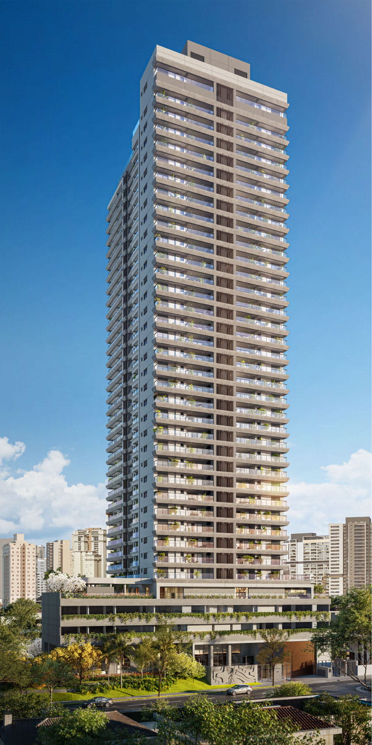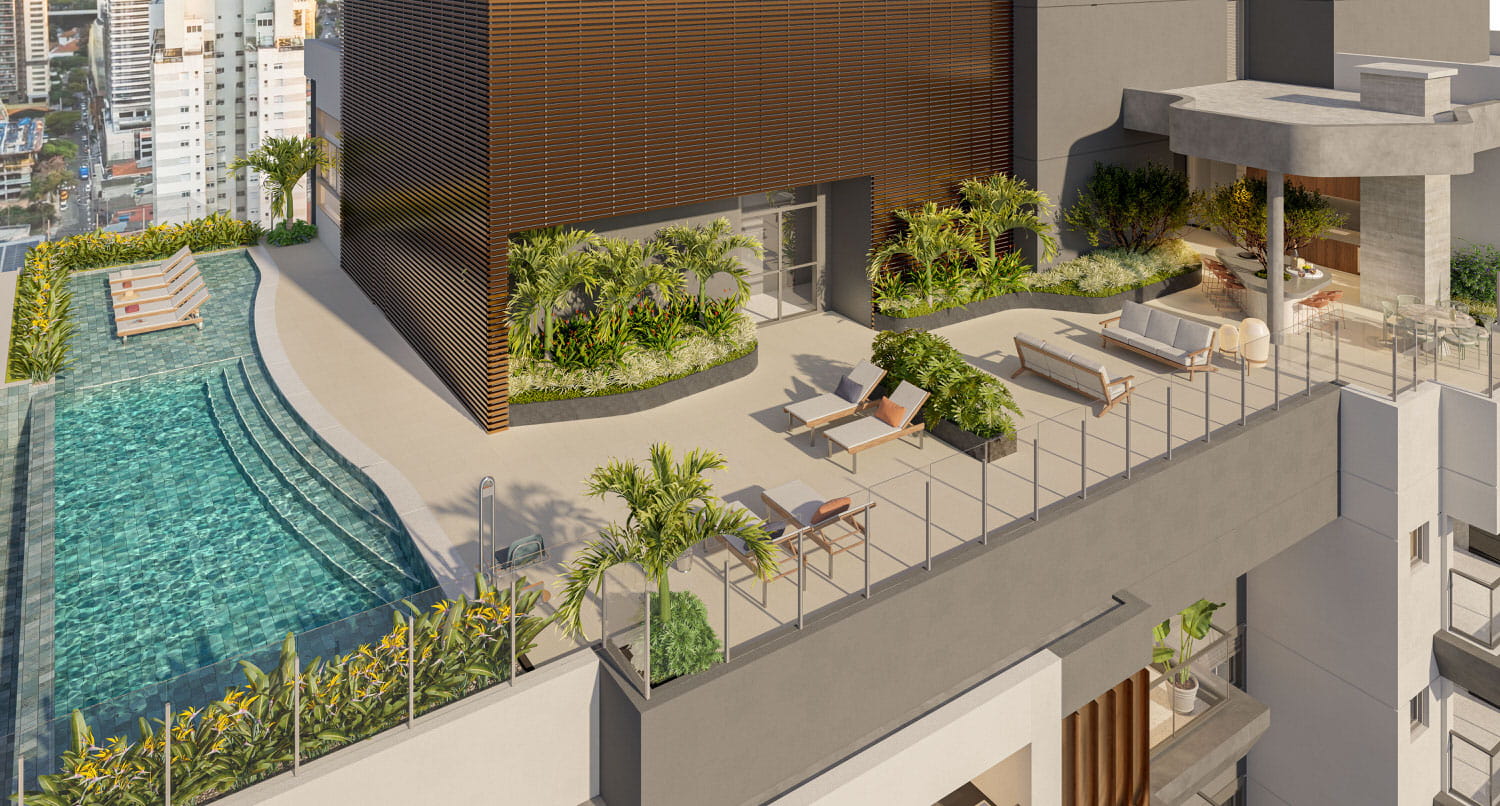 Apartamentos de 2 ou 3 suítes à venda Entre o Morumbi Shopping e Av. Roque Petroni Jr, em um condomínio com rooftop a mais de 100m de altura. Projeto único e autêntico, assinado pelo Burle Marx Escritório de Paisagismo. Conheça!